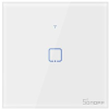 Kapcsoló - beltéri használatra, nyomógombos vezérlés, fix rögzítésű, csavarokkal történő rögzíthetőség, vakolathoz szerelhető, önállóan történő működés, használható világítás vezérlésére, dupla megnyomás és hosszú megnyomás funkció, 1 csatornás, 2 A-es maximális áramerősség, fehér színben, anyaga üveg, WiFi 2,4 GHz hálózaton keresztül vezérelhető, Android és iOS kompatibilis, kompatibilis alkalmazások: Gyártói alkalmazás, mérete 86 × 86