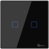 Kapcsoló - beltéri használatra, nyomógombos vezérlés, fix rögzítésű, csavarokkal történő rögzíthetőség, vakolathoz szerelhető, önállóan történő működés, használható világítás, elektromos hálózat, ablak-, ajtó-, és kapuvezérlés és Smart-Home vezérlésére, 2 csatornás, 2 A-es maximális áramerősség, fekete színben, anyaga üveg, WiFi 2,4 GHz hálózaton keresztül vezérelhető, Android és iOS kompatibilis, kompatibilis alkalmazások: Google Home és