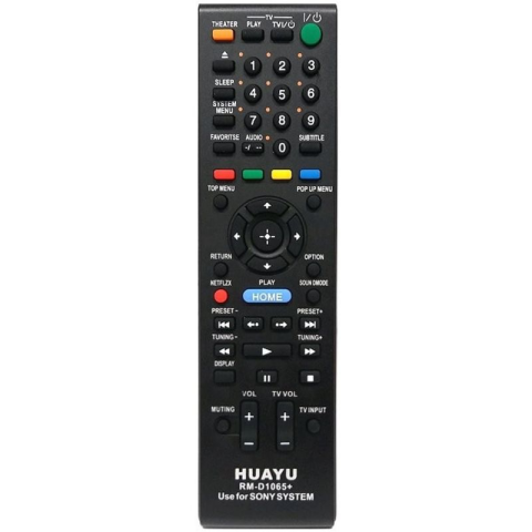 Sony univerzális, típusfüggő távirányítóSony univerzális, utángyártott távirányító . Ezek a távirányítók külalakra hasonlítanak a gyári távirányítóra, de gombkiosztásban, funkciókban lehetnek eltérések hiányosságok. Ezeknél az univerzális távirányítóknál nincs szükség beállításra, a távirányító megérkezésekor az elemek behelyezése után egyből tudja használni a kompatibilis listában található Sony házimozikkal. A kompatibilis lista n