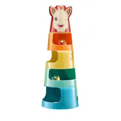 The Love Brand - Több, mint 60 éve a babák kedvence.Izgalmas játék kis felfedezőknek! Sophie óriás építőtornya öt, egymásra építhető elemből áll. Az építkezés során gyermeked játszva sajátít el fontos készségeket. Két üveggolyó segítségével a nagyobbak