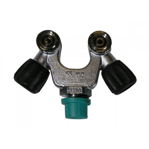 Dupla Palack csap M25X2 232BAR, matt chrome Dupla szelep M25X2-es menettel, DIN csatlakozással. Alkalmas két reduktor egyidejű használatára egy palackkal. 232BAR M25X2 O-gyűrűvel
