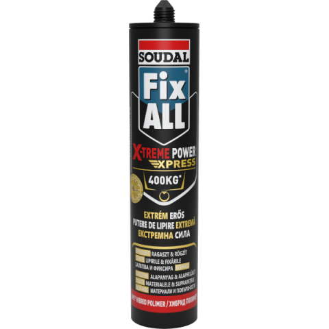 A Fix ALL® X-treme Power Express úgy lett kifejlesztve, hogy extrém nehéz tárgyakat is lehessen vele ragasztani alátámasztás nélkül. Képes akár 400 kg/m² azonnali tapadóerőt kifejteni és 30 perc elteltével megtart. A teljes kötés után a végső ragasztóereje még ennél is magasabb.