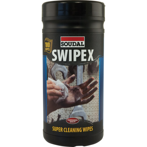 Soudal Swipex ipari tisztítókendő 100db Maradéktalanul eltávolítja a friss tömítő és ragasztóanyagot (szilikon, poliuretán, MS polimer, akril), purhabot és festéket, valamint sok egyéb szennyeződést a kézről, szerszámokról és különböző felületekről. N