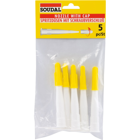 Műanyag tasakban 5 db sárga kupakos csőr 280 ml-hez. A belga Soudal vállalat elsősorban ragasztókra, tömítőanyagokra, habokra és egyéb építőipari termékek gyártására specializálódott. Ezek a termékek különféle felhasználási területeken, például építőip