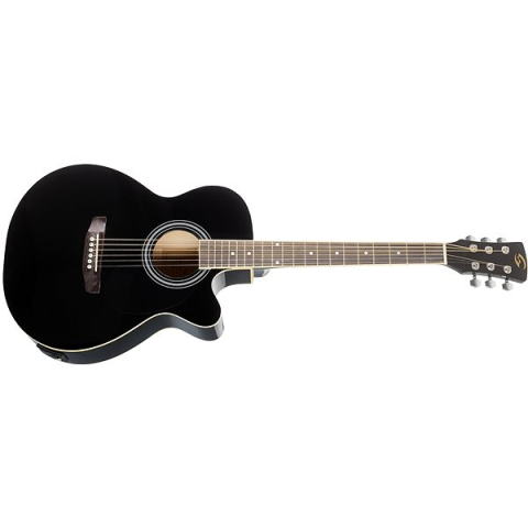 Elektroakusztikus gitár - 6 húros, test formája Jumbo, 20 bund, menzúra 645 mm, nullás húrláb szélessége 43 mm, réteges test, félfényes felületkezelés, lucfenyő elülső lemez, hársfa hátlap, hársfa test, babér nyak, blackwood fogólap, hangszedő és beépített hangoló, hangoló a csomag része Szeretnéd magad meglepni egy nagyszerű hangszerrel? Akkor megfelelő választás lehet a minőségi SOUNDSATION elektroakusztikus gitár. Nagyobb alsó résszel és erősebb hangz