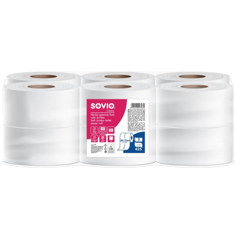A Sovio toalettpapírt a nagy kiszerelésnek köszönhetően közepes és nagy forgalmú helyiségekbe egyaránt ajánljuk, így HoReCa, gyárak, bevásárlóközpontok, irodák, szépségszalonok/kozmetikák, orvosi rendelők és klinikák, közlekedési létesítmények, közintézmé