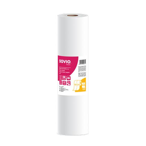 1 kép SOVIO Vizsgálóasztal terítő, 2 rétegű, 49 cm x 50 m, 130 lap, SOVIO