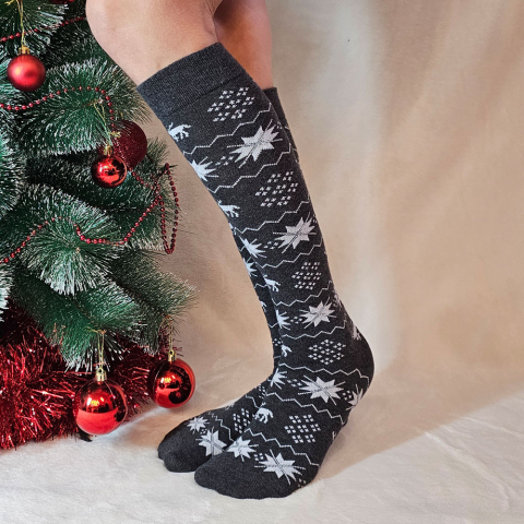 1 kép Sox World Női rénszarvas mintás térdzokni Sötét szürke