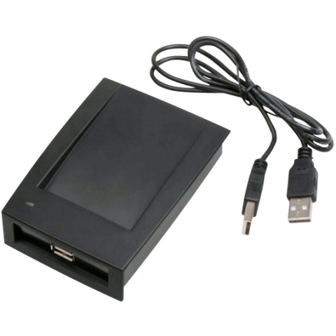 USB-s kártyaolvasó fekete színben A kártyaolvasó kiválóan használható beléptető rendszerekhez kártyakiadó terminálként. A számítógép USB portjához csatlakoztatva egyszerű beviteli eszközként működik. A felmutatott kártya számát a kívánt beviteli mezőbe írja automatikusan. - Önálló proximity kártyaolvasó. - Működési frekvencia: 13.56 MHz. - USB 2.0 csatlakozási felület. - Számítógéphez csatlakoztatva egyszerű beviteli eszközként használható. -