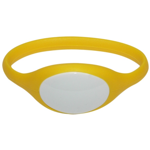 Vízálló, ovális szilikon proximity karkötő sárga/fehér színben - TK4100 RFID chip. - Frekvencia: 125 kHz. - Érzékelési távolság: 1 - 10 cm. - Passzív készülék, elem nem szükséges. - Élettartam: több, mint 100000 olvastatás. - Ovális formájú. - Sárga/fehér színű. - Rugalmas szilikon gumi. - Vízálló kivitel. - Átmérő: 74 mm.