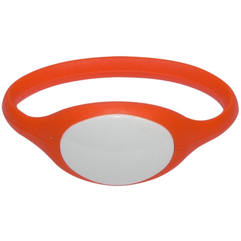 Ovális, vízálló szilikon proximity karkötő narancs/fehér színben	- Mifare S50 kompatibilis F08 RFID chip.	- Frekvencia: 13.56 MHz.	- Érzékelési távolság: 1 - 10 cm.	- Passzív készülék, elem nem szükséges.	- Élettartam: több, mint 100000 olvastatás.	- Ovális formájú.	- Narancs/fehér színű.	- Rugalmas szilikon gumi.	- Vízálló kivitel.	- Átmérő: 74 mm.