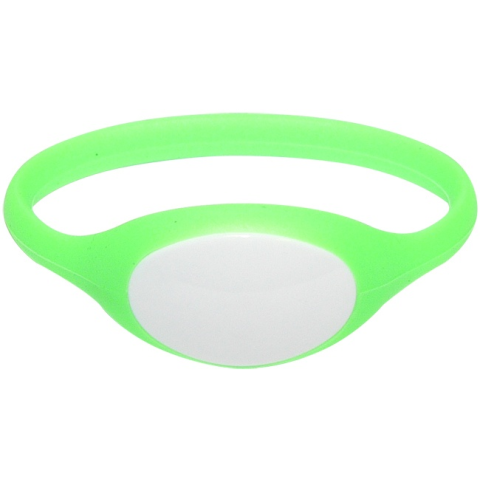 Ovális, vízálló szilikon proximity karkötő zöld/fehér színben - Mifare S50 kompatibilis F08 RFID chip. - Frekvencia: 13.56 MHz. - Érzékelési távolság: 1 - 10 cm. - Passzív készülék, elem nem szükséges. - Élettartam: több, mint 100000 olvastatás. - Ovális formájú. - Zöld/fehér színű. - Rugalmas szilikon gumi. - Vízálló kivitel. - Átmérő: 74 mm.