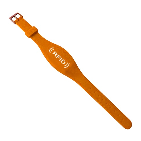 Ovális szilikon proximity karkötő csatos, állítható szíjjal, vízálló kivitelben, narancs színben	- Mifare S50 kompatibilis F08 RFID chip.	- Frekvencia: 13.56 MHz.	- Érzékelési távolság: 1 - 10 cm.	- Passzív készülék, elem nem szükséges.	- Élettartam: több, mint 100000 olvastatás.	- Ovális formájú.	- Csatos, állítható szíj.	- Narancs színű.	- Rugalmas szilikon gumi.	- Vízálló kivitel.	- Szíjhossz: 242 mm.	- Szíj szélessége: 16 mm.	- Szíj vastagsága: 2 m