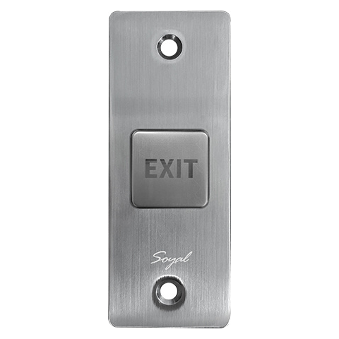 SOYAL fém nyomógomb, elsősorban beléptetőrendszerek kilépési gombja A nyomógomb főbb jellemzői Rendkívül szép megjelenésű, esztétikus nyomógomb bármilyen funkcióra, de elsősorban beléptetőrendszerek kilépési gombjának ajánljuk. Felületre szerelhető. Fém ház és fém nyomógomb. Keskeny téglalap alakú. Méretek: 108 x 41 x 7 mm. CE minősítés. RoHS tanúsítvány.
