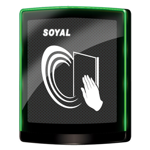 SOYAL infravörös, érintés nélküli közelítő kapcsoló zöld és piros LED-el A kapcsoló főbb jellemzői Rendkívül szép megjelenésű, esztétikus nyomógomb bármilyen funkcióra, de elsősorban beléptető rendszerek kilépési gombjának ajánljuk. Elektronikus, nem tartalmaz mechanikus elemet. Infravörös, közelítő érzékelő. Közelítési távolság: 0.5 cm vagy 5-20 cm. Falba süllyeszthető. Nyomógomb megvilágítás zöld és piros edge LED-del. Relés kap