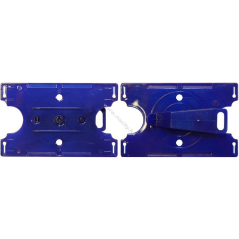 Kék proximity kártya tok	- Bármilyen gyártmányú (pl. Soyal), hitelkártya méretű proximity kártyákhoz.	- Egyszerű kártyabehelyezés és kivétel mindkét oldalról.	- Rögzítő fül nyakbaakasztóhoz vagy kulcstartóra fűzéshez.	- Függőlegesen hordható.