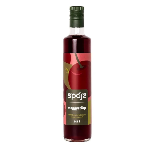 Spájz szörp meggy 500 ml A hagyományos családi recept alapján készülő Spájz Meggyszörp felhasználása hűs szódavízzel, gyümölcsös limonádék, koktélok készítéséhez ajánlott, desszertek kiváló társa. Az ajánlott keverési arány mellett 0,5 liter Spájz Ször