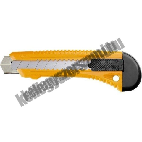 Markolata mûanyag, a késház fémbõl készült. Színe srága vagy piros, nem tudjuk garantálni, hogy melyik szállítmányban milyen van. Papír, karton és más anyagok vágására tervezték, amelyek nem igényel sok erõfeszítést. A kés mûanyag tokkal, nyomógombos f