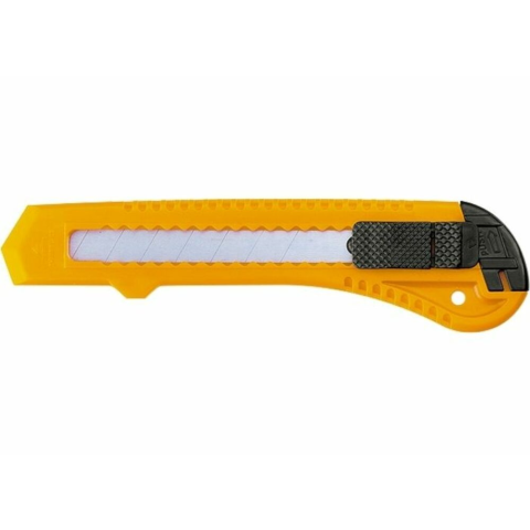 Markolata mûanyag. Színe srága vagy piros, nem tudjuk garantálni, hogy melyik szállítmányban milyen van. Papír, karton és más anyagok vágására tervezték, amelyek nem igényel sok erõfeszítést. A kés mûanyag tokkal, nyomógombos fékkel és penge rögzítésse