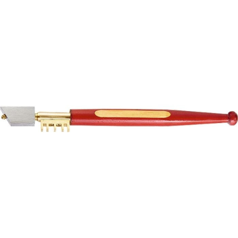 A fogantyú fából készült és lakkozott. A daraboló elem ipari gyémánt karckés. A szerszámfej különleges alakú, a könnyebb használat érdekében. Az üvegvágónak négy, 2, 3, 2 x 4 mm méretû barázdája van, amelyeket úgy terveztek, hogy törhesse az üveg széléé