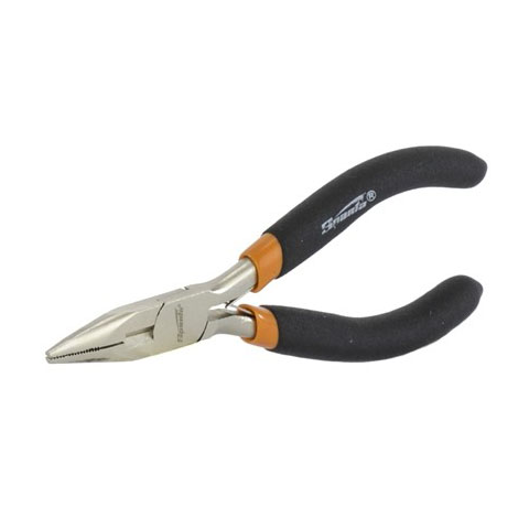 Egyenes orrú, nikkelezett, hosszú fogó Sparta Mini 17820 automatikus kioldóval. 130mm, a kis alkatrészek, vezetékek, vezetékek befogásával és megtartásával kapcsolatos nagy pontosságú munkákhoz készült. A meghosszabbított pofák szûk helyekhez biztosítana