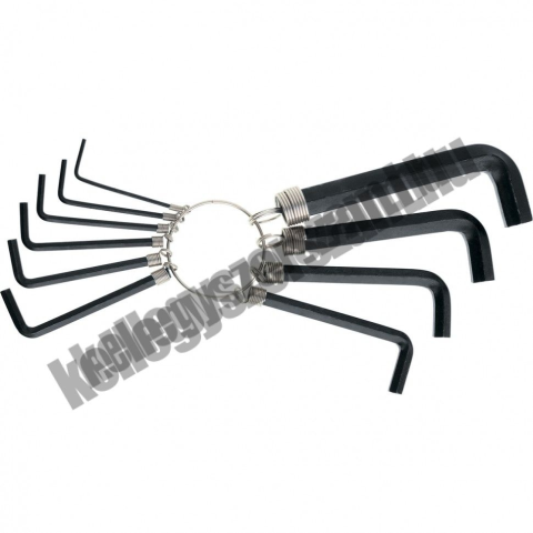 A Hex kulcskészletet úgy tervezték, hogy belsõ hatlapfejjel felszerelt rögzítõkkel dolgozzon. A kulcsok szénacélból készültek, oxidáltak. A munkadarab keménysége 45 HRC. Az egyszerû tárolás érdekében a kulcsok gyûrûre vannak felszerelve. A készlet összeté