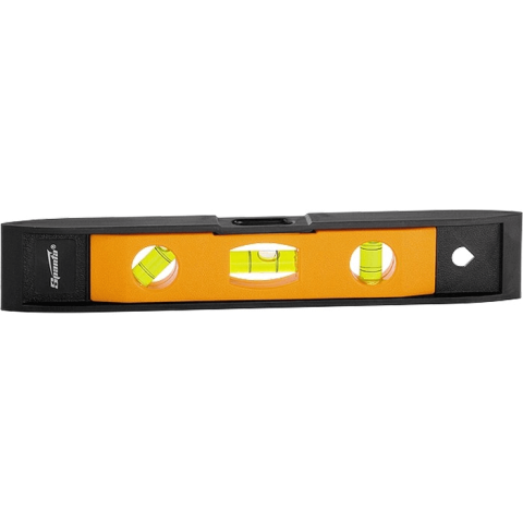 Vízmérték ütésálló mûanyagból, mágneses betétekkel, amelyekkel csövekre, fémekre tapasztható. Három libellával rendelkezik három különbözõ síkra,vízszintesen, függõlegesen és 45 fokos szögben történõ ellenõrzésére nehezen elérhetõ helyeken. A szerszám me