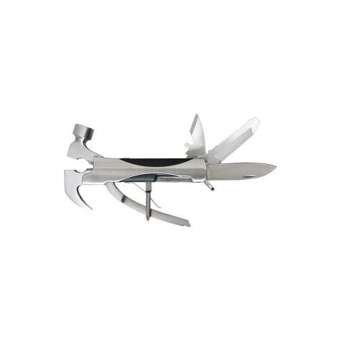 Mini multi szerszámkészlet 12 funkció övtáskával//Sparta nagy késfűrészlapfunkciók: 12konzervnyitófogó, körömhúzóanyag: INOX acélkerek arcú kalapácsméretek: 178x76x35 mmPhillips és hornyos csavarhúzókEAN kód: 4044996105253