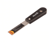 Spatula rozsdamentes acélból. A markolat mûanyagból készül, egy lyukkal a szerszámfalon történõ akasztáshoz. A spatula célja a gittréteg felületének felhordása, kiegyenlítése és simítása. A spatula csiszolt munkafelülete biztosítja a munkafelület tökél