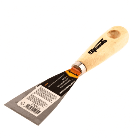Spatula acélból lakkozott fa markolattal. A spatula célja a gittréteg felületének felhordása, kiegyenlítése és simítása. A nyél furattal készül, mely praktikus szerszámfalra történõ akasztáshoz. Jellemzõk méret 50mm anyag INOX markolat fa, lakko