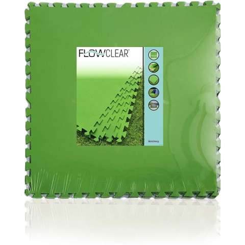 A Bestway Medence alátét puzzle 78x78cm-es méretben kapható medence védő alátét szőnyeg szett. A csomag 9db szőnyeget tartalmaz, mely 5,47m2 felületet eredményez. Védelem a medence alsó részének. Könnyen telepíthető és összeszerelhető szigetelő felület. Bármekorra méretet kirakhatunk, ugyanis a csomagok kompatibilisek egymással, így kedvünkre alakíthatjuk a méretét!