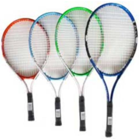 Könnyített alumínium teniszütő gyerekek részére. Hossz: 68 cm. Kék vagy lila/fehér színben.