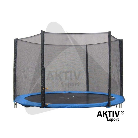 Trambulin védőháló 250 cm A védőháló, más néven biztonsági háló a nagyobb méretű trambulinok elengedhetetlen tartozéka. Fekete színű, vízálló, UV-rezisztens, strapabíró műanyagból készült, zipzárral és műanyag karabinerrel ellátott belépőnyílással van