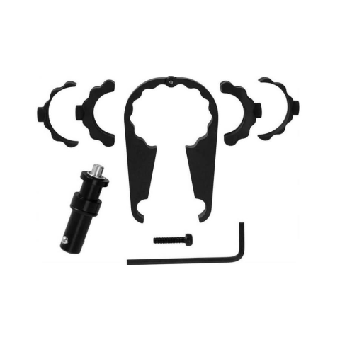 Tartalmazza a rögzítő tengelyt, a kormánybilincset, a hézagoló gumi alátéteket, a rozsdamentes csavart, és a szereléshez szükséges 3 mm-es imbuszkulcsot.