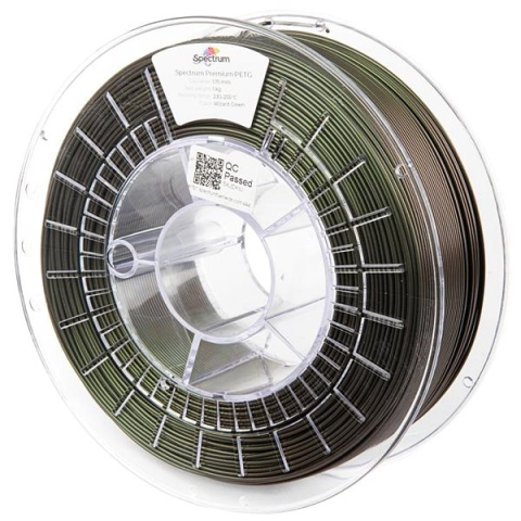Filament – PETG anyagból PETG+, 1,75 mm húrátmérő 0,03 mm tűréssel, 1 kg tömegű, 255 °C max. nyomtatási hőmérséklet, max. nyomtatási platform hőmérséklet 80 °C, ajánlott nyomtatási sebesség 30 mm/s - 150 mm/s A keresett Spectrum PETG filament PETG anyagból készült, amely rendkívül ellenálló. Zöld színben kapható. Ez a változat a PETG+ változat, amely nagyobb szilárdságot és kémiai ellenállást biztosít a ha