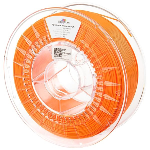 Filament – PLA anyagból, 1,75 mm húrátmérő 0,03 mm tűréssel, 1 kg tömegű, 230 °C max. nyomtatási hőmérséklet, max. nyomtatási platform hőmérséklet 45 °C, ajánlott nyomtatási sebesség 30 mm/s - 350 mm/s A minőségi Spectrum PLA filament PLA-ból készült, így a kezdők is értékelni fogják. Narancssárga színű. Átmérője 1,75 mm 0,03 mm toleranciával, ami megfelel a hobbi és félprofesszionális felhasználás