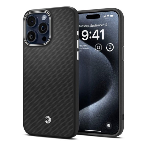 1 kép Spigen ENZO ARAMID telefonvédő (Magsafe, karbon minta) FEKETE Apple iPhone 15 Pro Max