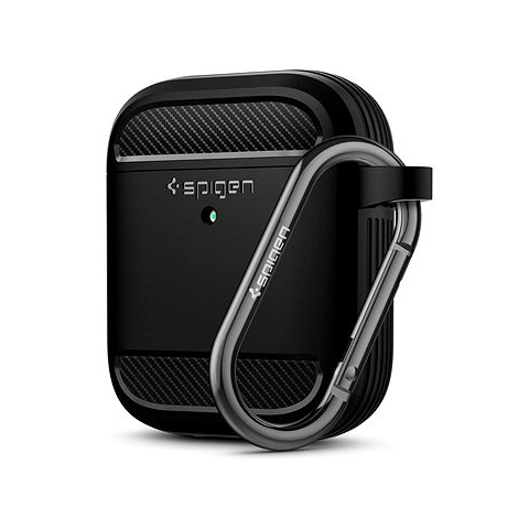 1 kép Spigen RUGGED ARMOR szilikon tok (közepesen ütésálló, karabíner) FEKETE Apple AirPods