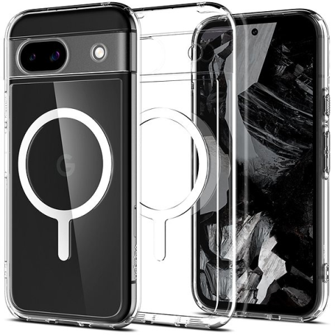 Telefon tok - Google Pixel 8a 5G tok, anyaga TPU, puha, MagSafe, vezeték nélküli töltéssel kompatibilis, kivágások a csatlakozóknak, gomboknak, Air cushion Az átlátszó tok fokozott védelmet nyújtNe bízz semmit a véletlenre, és óvd meg Google Pixel 8a 5G okostelefonodat a sérülésektől a stílusos Spigen Ultra Hybrid OneTap Metal Ring MagSafe tokkal! A tok
