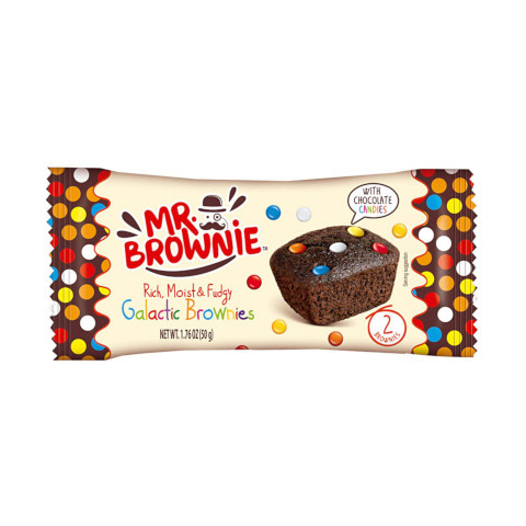 Mr.Brownie szelet 50g Tejcsokoládés drazséval Kiemelt jellemzők Ideális méret – 50 g-os szelet, tökéletes személyes nassolásra vagy gyors étkezés mellé. Textúra – selymes brownie belső mellett ropogós tejcsokoládés drazsé a tetején. Ízvilág –