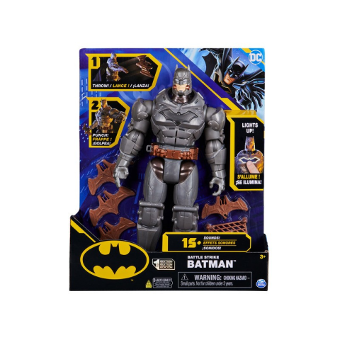 Korosztály: 3 - 12 év Egy új akciófigura, amely valójában fegyvereket dob. A lábát húzva kinyújtja a kezét, és Batterangot, hálót vagy horgot dob a távolba.A figura körülbelül 30 cm nagyságú. 3 db AG13 (LR44) 1,5 V-os gombelem szükséges (a csomag tartalmazza).