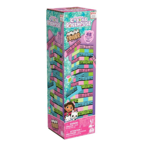 A Gabby Babaháza: Színes toronyépítő jenga társasjáték egy igazán izgalmas stratégiai és ügyességi játék a Spin Master-tól, amelyben a gyerekeknek meg kell építeniük és ügyesen kell bontaniuk egy tornyot, Gabby Babaháza mintás, élénk színű faelemekből. Ez a játék nemcsak szórakoztató, hanem kiválóan fejleszti a finommotoros készsége