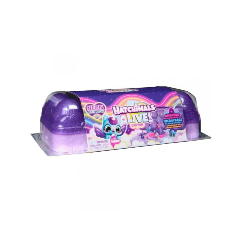 Hozd el a szivárvány varázsát a Hatchimals Alive!: Neon Rainbow Tojástartó segítségével! Ez a különleges készlet öt neon színű tojást tartalmaz, amelyek mindegyike egy varázslatos Hatchimals figurát rejt. A csillámos, lila tojástartó elegáns és praktikus tárolóhelyet biztosít a tojásoknak és a kiegészítőknek, így a játék után is rendet tarthatsz.