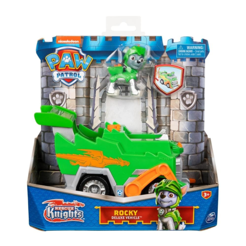 Csatlakozz Rockyhoz és az izgalmas mentőakciókhoz a Mancs őrjárat Mentőlovagok átalakuló Deluxe járműveivel. Rocky járműve sárkány-ihlette részletekkel és formavilággal rendelkezik, valamint egy izgalmas mentőeszköz-átalakulásra is képes. A vadonatúj Ment