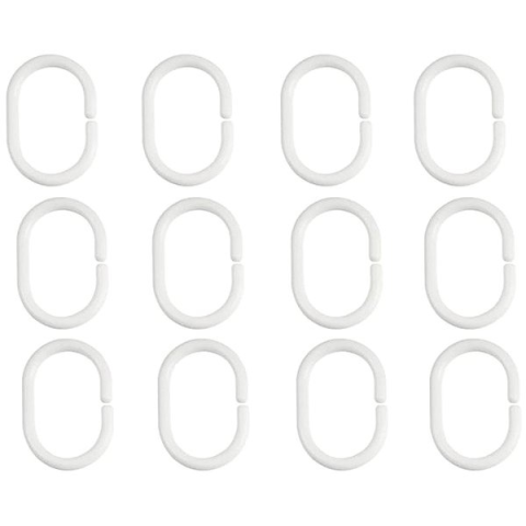 Karika - 12 darabos készlet, zuhanyfüggönyökhöz, könnyen felszerelhető, korrózióálló Key features of Spirella set, 12 pcs of shower curtain rings C-MINNOR, white, polypropyleneSet of 12 shower curtain rings by Spirella Convenient installation and removal thanks to smal