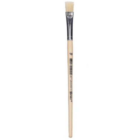 Ez egy igazán klasszikus ecset, natúr fa nyéllel, amihez egy fémpánt rögzíti a tízes méretű lapos sörtét, így vastagabb, egyenes vonalakat sokkal pontosabban képes húzni, mint egy kerek ecset, illetve nagyobb felületek egyenletes színezésére is alkalmas. Az ecset kiváló minőségű sörtével lett ellátva ami a legtöbb technikánál remekül beválik, mivel jól felveszi a festék