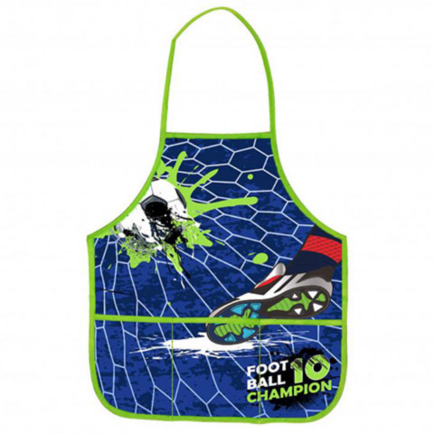 A sportrajongó kis srácoknak biztos tetszeni fog ez a labdarúgó mintával díszített festőkötény, amelynek az első zsebeiben pedig bőven van hely az éppen nem használt ecsetek számára. Minden szülő rémálma, amikor a gyerekek a kreatív alkotás során összevissza kenik a ruhájukat, azonban az ilyen esetekre remek megoldás lehet egy kötény felvétele. Ez a kék színű festőkötén