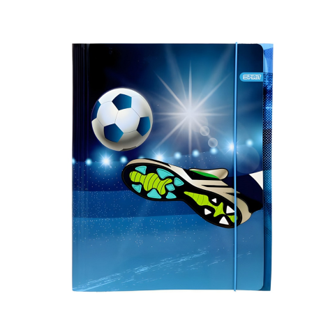 Fedezze fel a Spirit legújabb gumis mappáját az A/4-es méretben, amely a Game On kollekció egyik legizgalmasabb és legdinamikusabb darabja. Ez a mappa nem csupán praktikus tárolóeszköz, hanem egy igazi vizuális élményt is nyújt, amely minden futballrajongót lenyűgöz. A mappa dizájnja egy focistadion fényeit ábrázolja, központjában pedig egy játékos lába látható, amint é