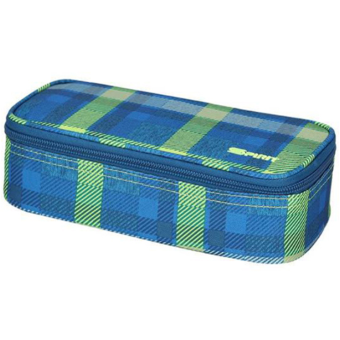 A Spirit márkájú ovális tolltartó sorozat egy kék alapszínnel rendelkező darabbal is bővül, amelyen zöld csíkozás található és a két szín kiválóan harmonizál egymással a kiváló minőségű poliészter felületen. Nagy belső tároló méretének köszönhetően rengeteg írószer elférhet benne, míg általános iskolában az alapvető írószerek mellett a s