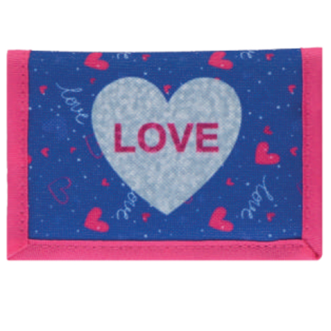 A romantikus beállítottságú lányoknak remek választás ez a pénztárca aminek a fő dekorációját egy hatalmas szív és a LOVE felirat alkotja. A rózsaszín és kék színekben pompázó tárca nem csak mutatós, de nagyon praktikus belső kialakítást is kapott. A zsebekben tarthatjuk a papírpénzünket és az igazolványainkat, míg az aprót egy külön cipzárral zárható zsebben tudhatjuk biz